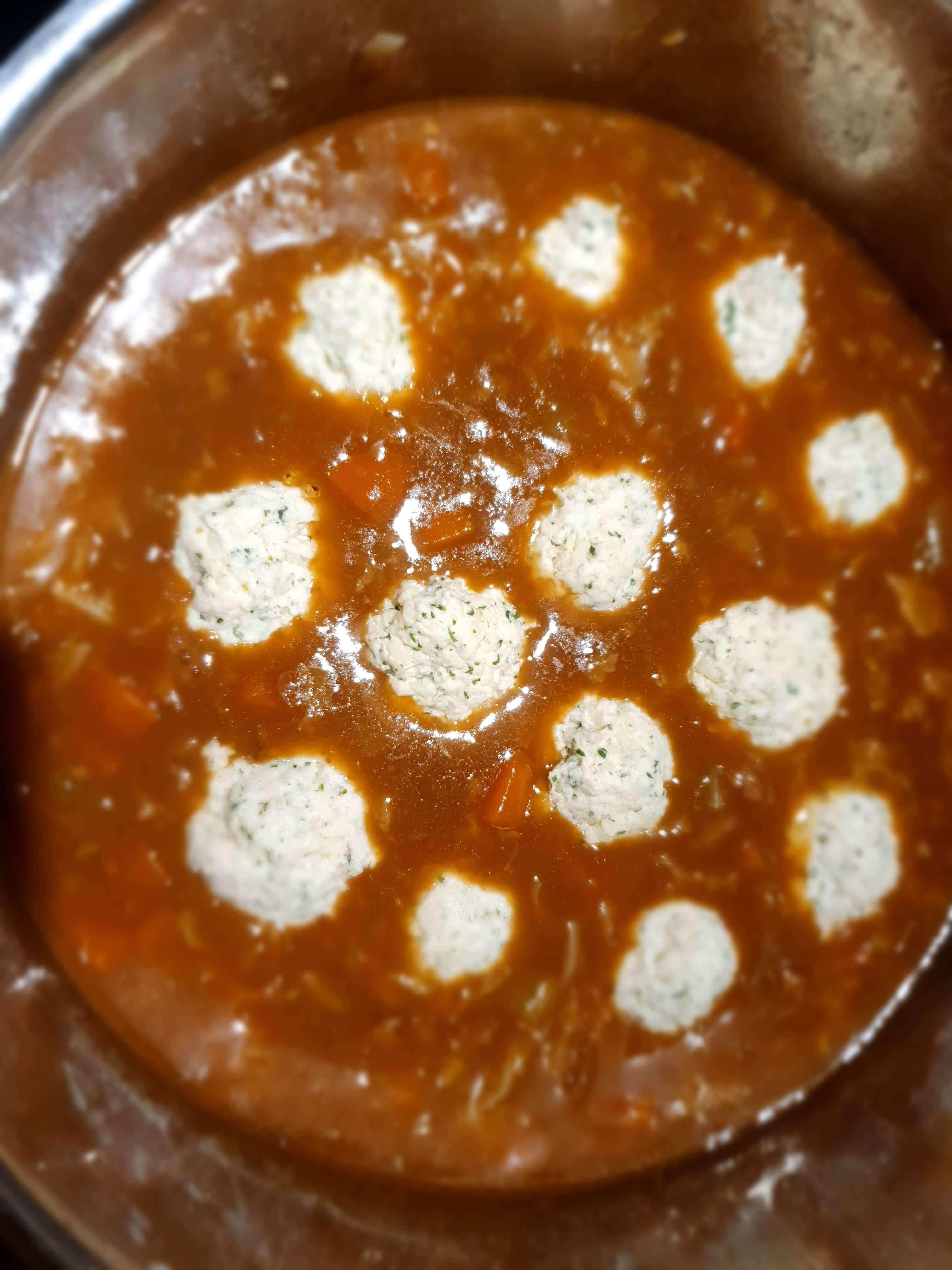 10. About 30-40 minutes before you want to eat you’ll need to prepare your dumplings. Mix the suet, flour, water, and chopped parsley together. You’ll want the mix to be mouldable but slightly tacky to touch. Mould into balls weighing roughly 20 grams each and gently slide these into your stew. Cover with a lid and let them cook for about 20-30 minutes. You’ll know they’re cooked by them increasing in size and if you touch the top of a dumpling it won’t be sticky.