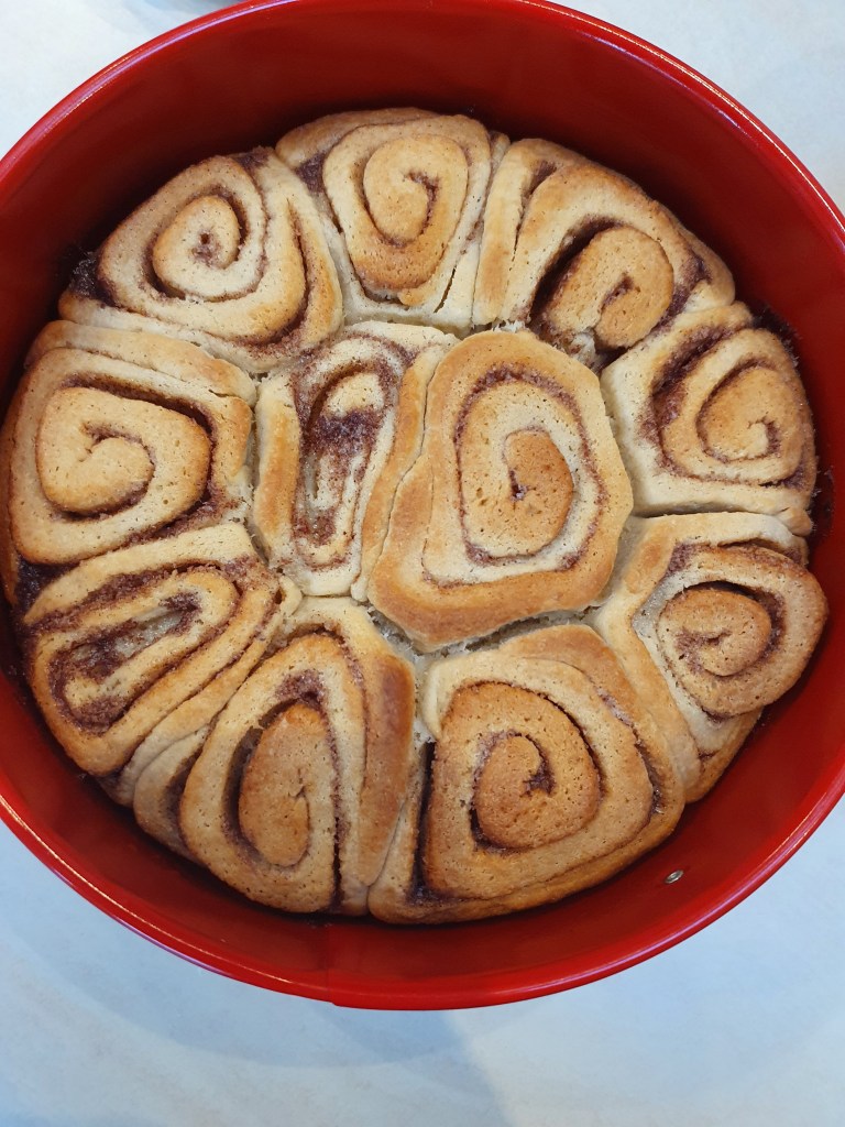 16. Once your cinnamon buns are cooked they should be golden brown and firm to the touch. Take them out of the oven but leave them in the tin to cool.