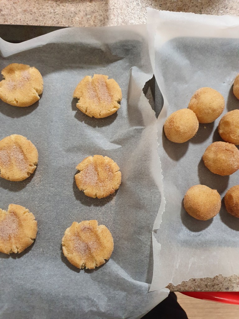 8. Pop your cookies in the oven for roughly 10-13 minutes. As they are coated in sugar they will colour very quickly. Once they start to turn it is a very small increment of time between golden brown and burnt.